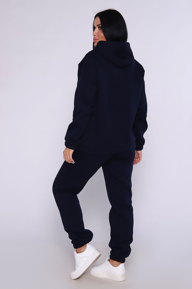 Теплый костюм выполнен из футера 3-х нитки с начесом с содержанием хлопка премиум качества. Костюм состоит из объёмной толстовки в стиле "оверсайз" с накладными карманами и джогеров. Низ брюк и рукавов на толстовке обработан резинкой. Пояс брюк на резинке, для удобства по бокам расположены прорезные карманы. Перед использованием желательно постирать костюм при 30 градусах, тогда излишний ворс примнется.